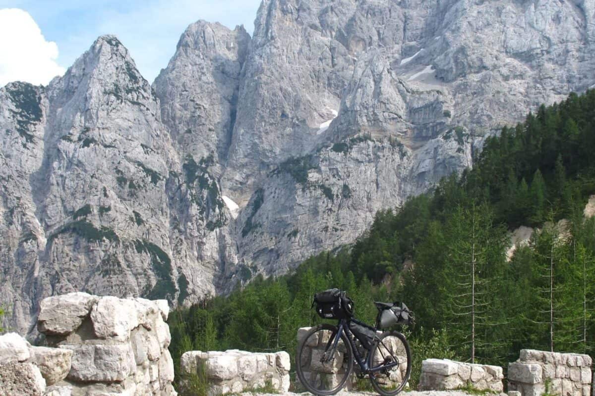 Entlang des Flusses Pišnica, vorbei am Jasna-See auf der Hauptstraße, die über den Vršič-Pass auf die Primorska-Seite führt, radeln wir in das Herz der Berge, die ein weiteres nach Süden ausgerichtetes Tal, Krnica, abschließen. Auf dem gesamten Weg von Kranjska Gora aus können wir den wunderschönen Vorhang der steilen julianischen Wände sehen, in dessen Herz, oder besser gesagt, an dessen Fuß wir uns befinden.