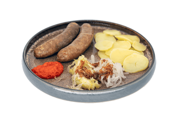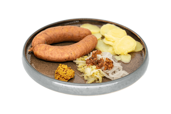 Probieren Sie die berühmte slowenische Krainer Wurst mit Kartoffeln, Kraut oder Rüben.