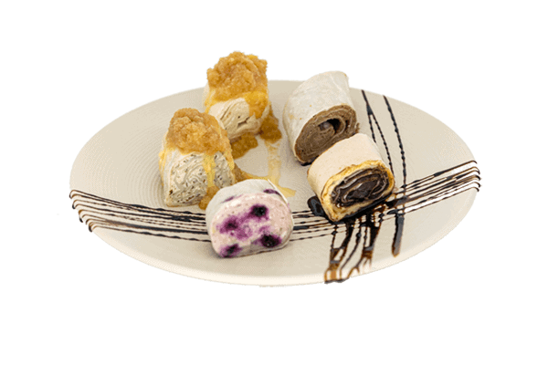 In der Knödelmischung finden Sie fünf verschiedene Geschmacksrichtungen: Schokolade und Orange, Walnuss, Quark, Estragon und Heidelbeere.