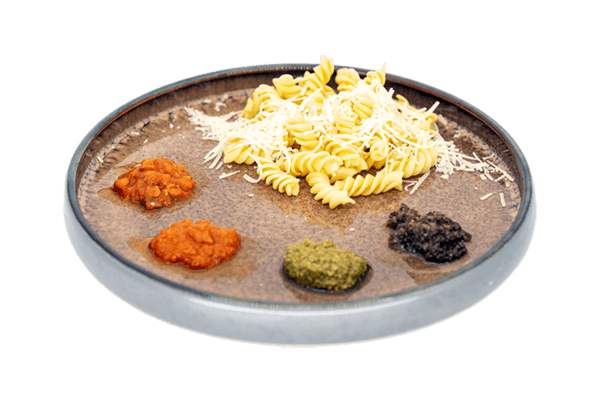 Das vegetarische Tagesgericht kann Pasta mit Steinpilzen, Pasta mit Pesto, Pasta Bolognese oder vegetarische Bolognese-Soße oder Trüffelpilzen sein.