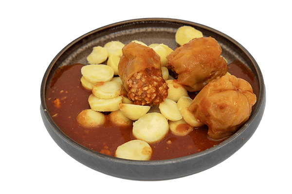 Die Füllung besteht aus Hackfleisch, Reis und Kräutern.